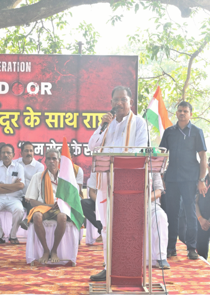 मुख्यमंत्री विष्णु देव साय ने इस अवसर पर कहा कि “यह यात्रा न केवल तिरंगे के प्रति सम्मान है, बल्कि यह हमारे शहीदों को सच्ची श्रद्धांजलि भी है। यह अभियान देश की एकता, अखंडता और संप्रभुता को सशक्त बनाने का प्रतीक है।”ऑपरेशन सिंदूर’ के अंतर्गत पूरे जिले में एक साथ तिरंगा यात्रा आयोजित की गई, जिसका उद्देश्य युवाओं में देशभक्ति की भावना का संचार करना, जनसहभागिता के माध्यम से राष्ट्रीय एकता को मजबूत करना है।